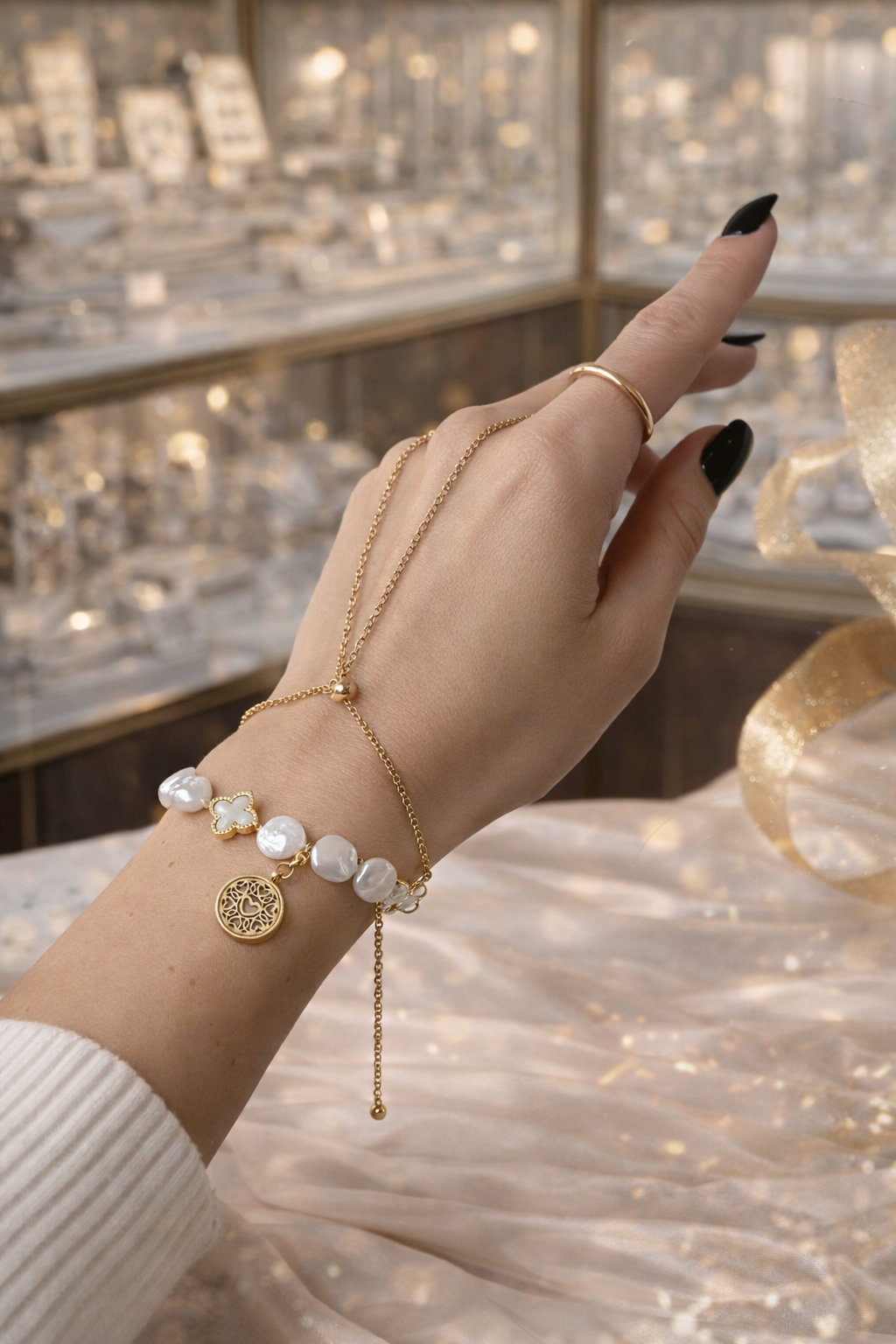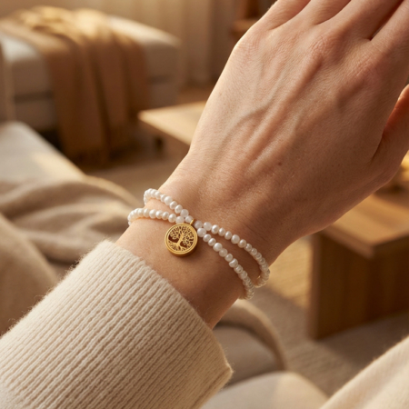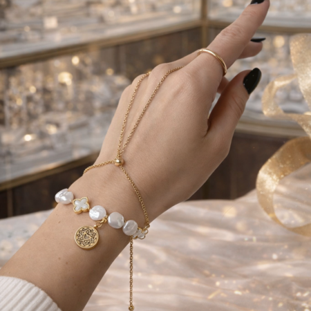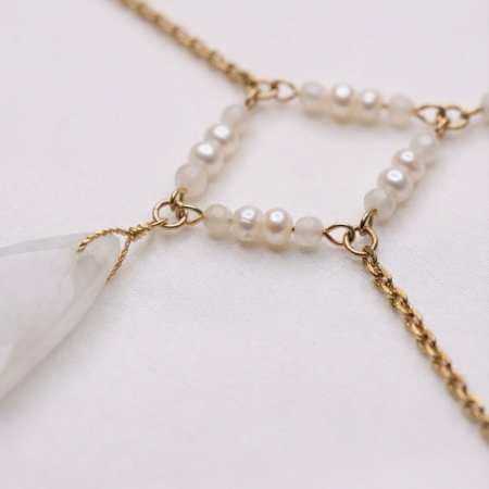 Zestaw biżuterii perłowej to połączenie klasycznej elegancji, subtelnej zmysłowości i symboliki zakorzenionej w naturze. Ręcznie wykonany z naturalnych pereł oraz pozłacanej stali nierdzewnej, został stworzony jako osobisty talizman – delikatny, a jednocześnie wyrazisty.